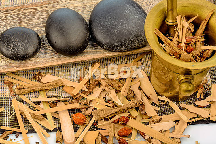 Beschreibung Zutaten für einen Tee in der traditionellen chinesischen Medizin. Heilung von Krankheiten durch alternative Methoden.