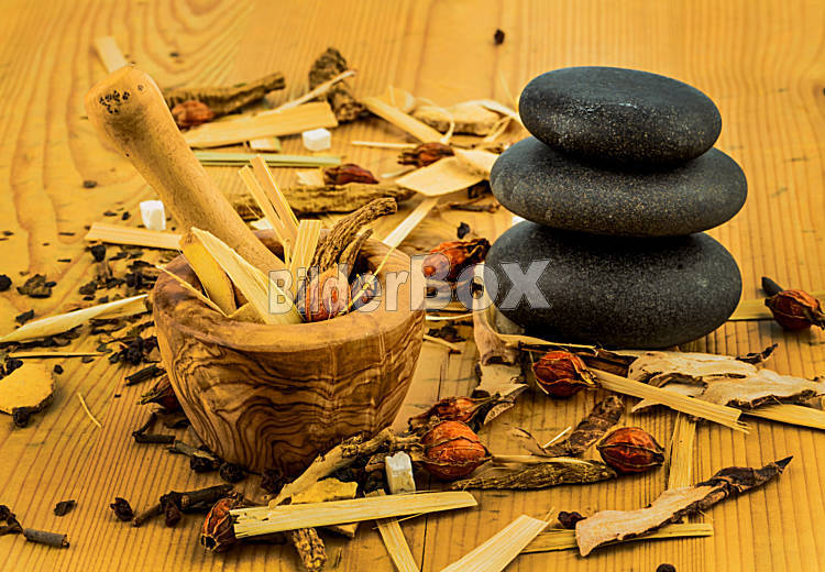 Beschreibung Zutaten für einen Tee in der traditionellen chinesischen Medizin. Heilung von Krankheiten durch alternative Methoden.