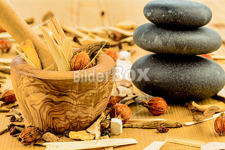 Beschreibung Zutaten für einen Tee in der traditionellen chinesischen Medizin. Heilung von Krankheiten durch alternative Methoden.