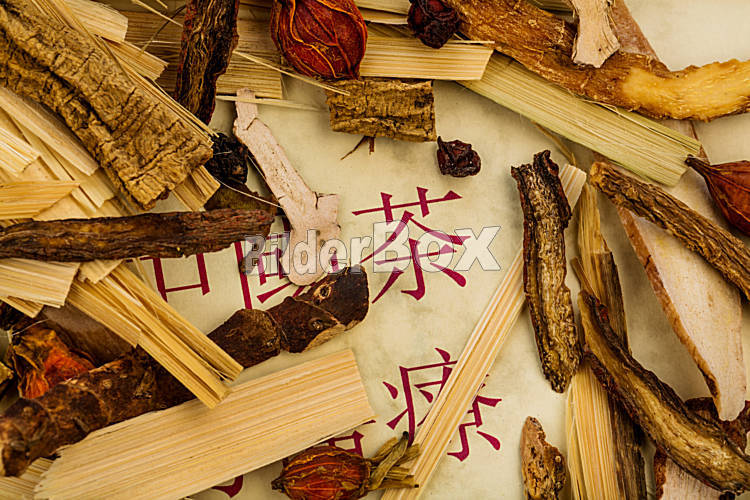 Beschreibung Zutaten für einen Tee in der traditionellen chinesischen Medizin. Heilung von Krankheiten durch alternative Methoden.