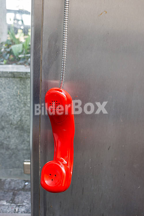 Beschreibung Eine Telefonzelle der Telekom in Österreich mit rotem Telefonhörer