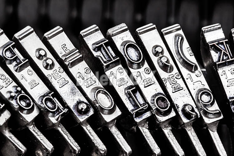 Beschreibung Typen einer alten Schreibmaschine. Symbolfoto für Kommunikation in früheren Zeiten