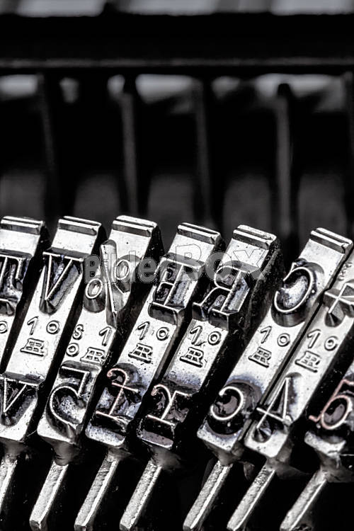 Beschreibung Typen einer alten Schreibmaschine. Symbolfoto für Kommunikation in früheren Zeiten