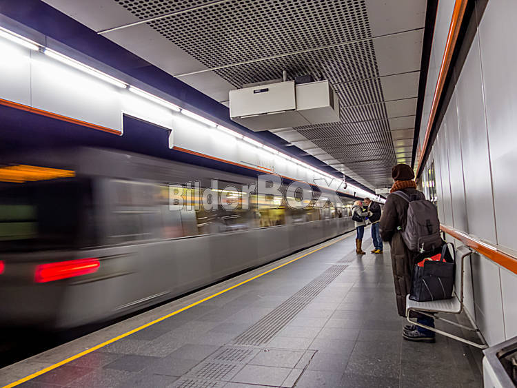 Beschreibung Auf einer U-Bahn-Station fährt eine Ubahn ein.