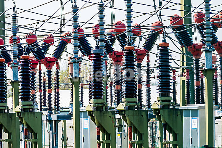 Beschreibung Das Umspannwerk in einem Kraftwerk. Strom Verteilung.