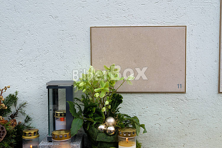Beschreibung Gedenktafeln für Gräber auf einem Friedhof ohne Inschrift