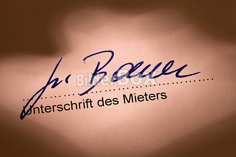 Beschreibung Unterschrift des Mieters unter einen Mietvertrag