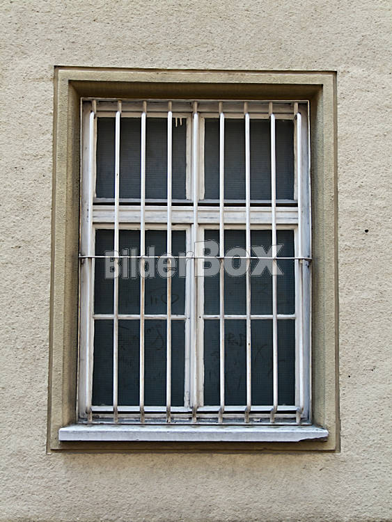 Beschreibung Vergitterte Fenster eines alten Gefängnisses