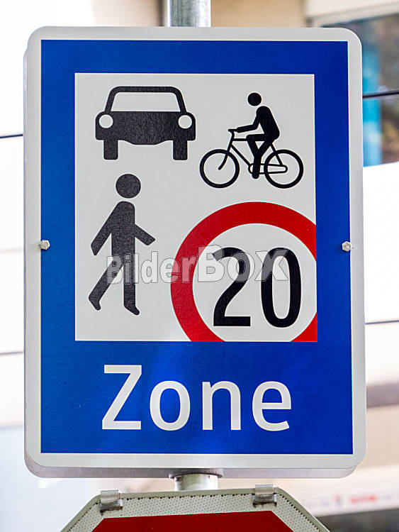 Beschreibung Eine verkehrsberuhigte Zone oder Strasse wird durch ein Verkehrszeichen angezeigt