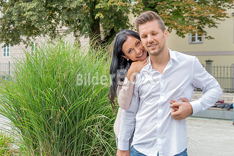 Beschreibung Ein junges, verlliebtes Paar in einem Park