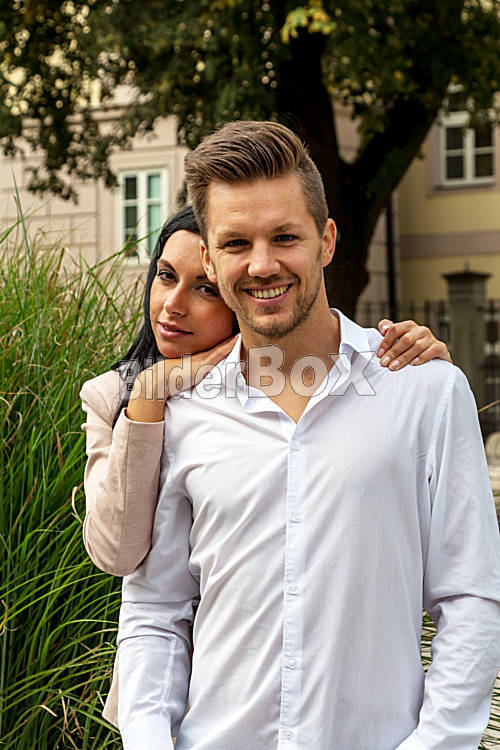 Beschreibung Ein junges, verlliebtes Paar in einem Park
