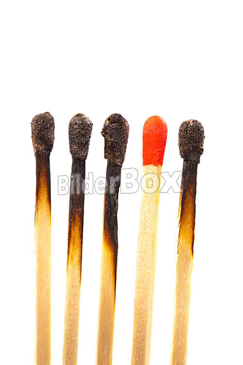 Beschreibung Viele abgebrannte und neue Streichhölzer nebeneinander. Symbolphoto für Integration