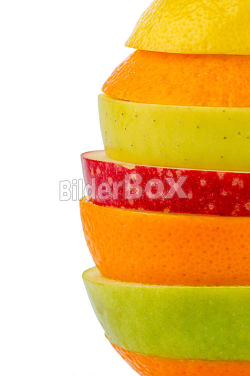 Beschreibung Mehrere verschiedene Scheiben von frischen Früchten mit vielen Vitaminen
