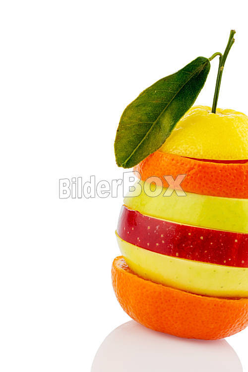 Beschreibung Mehrere verschiedene Scheiben von frischen Früchten mit vielen Vitaminen