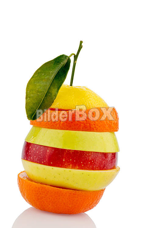 Beschreibung Mehrere verschiedene Scheiben von frischen Früchten mit vielen Vitaminen
