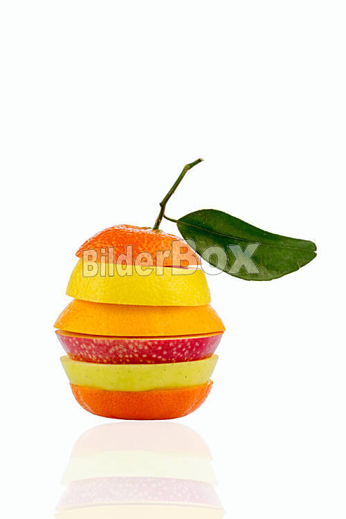 Beschreibung Mehrere verschiedene Scheiben von frischen Früchten mit vielen Vitaminen