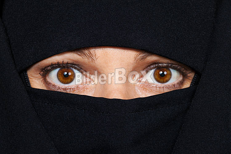 Beschreibung Symbolfoto Islam. Muslimische mit Burka ist verschleiert.