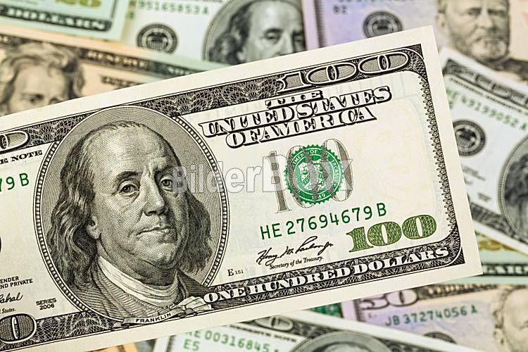 Beschreibung Viele amerikanische Dollar Geldscheine. Symbolfoto Schulden und Reichtum