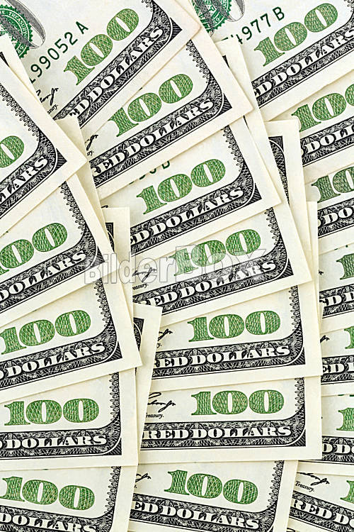Beschreibung Viele amerikanische Dollar Geldscheine. Symbolfoto für Schulden und Reichtum