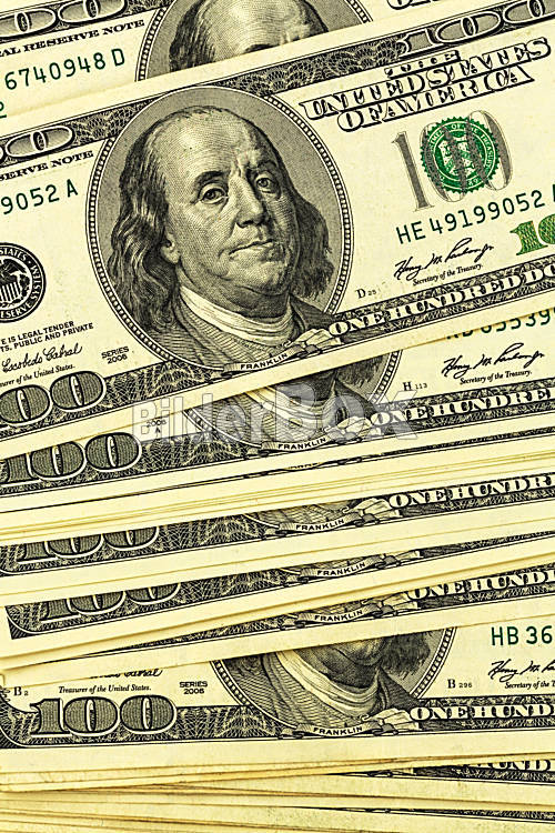 Beschreibung Viele amerikanische Dollar Geldscheine. Symbolfoto für Schulden und Reichtum