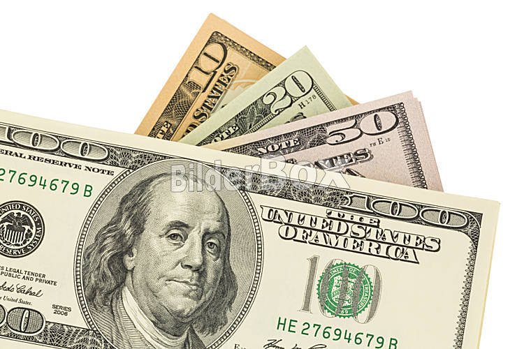 Beschreibung Viele amerikanische Dollar Geldscheine. Symbolfoto für Schulden und Reichtum