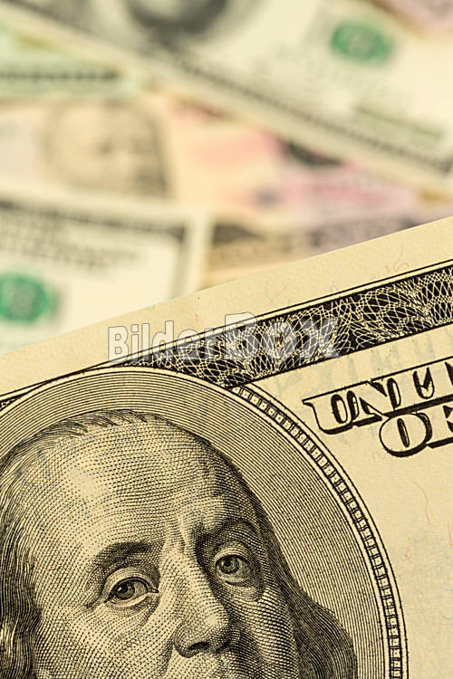 Beschreibung Viele amerikanische Dollar Geldscheine. Symbolfoto für Schulden und Reichtum