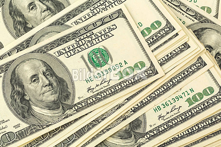 Beschreibung Viele amerikanische Dollar Geldscheine. Symbolfoto für Schulden und Reichtum