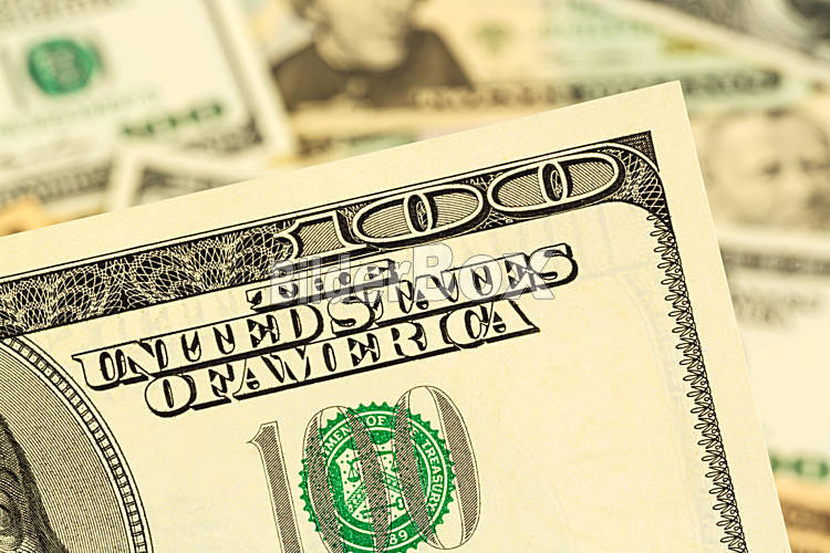 Beschreibung Viele amerikanische Dollar Geldscheine. Symbolfoto für Schulden und Reichtum