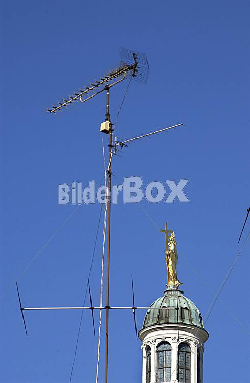 Beschreibung Fernsehantennen auf einem Hausdach in Italien mit Kirchturm Copyright (2002) by BilderBox.com; Erwin Wodicka, A-4062 Thening. www.bilderbox.com. + und im als mit beim & and beim als auf...