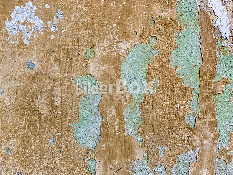Beschreibung Viele verschiedenfarbige Anstriche auf der Fassde eines alten Hauses in Pastelltönen.