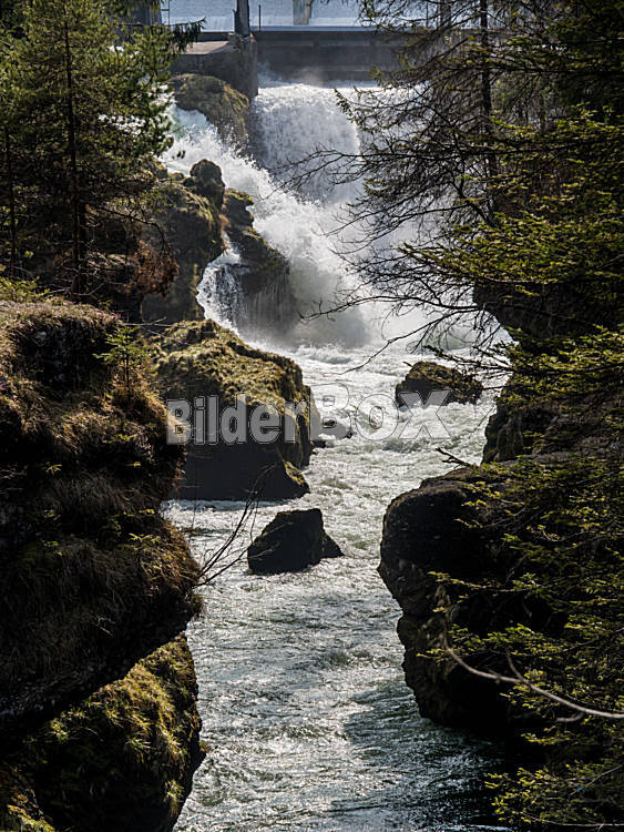 Beschreibung Wasser fliesst über einen Wasserfall. Schönheit der Natur