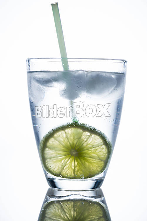 Beschreibung Ein Glas mit frischem Trinkwasser und einer Limette. Mineralwasser als Durstlöscher.