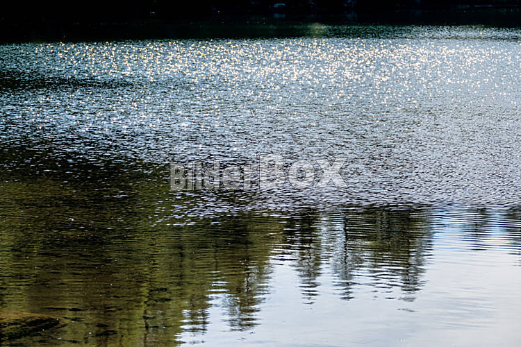 Beschreibung Wasseroberfläche im Sonnenschein, Symbol für Idylle, Natur, Kontemplation