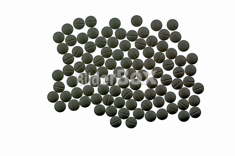 Beschreibung Weiße Tabletten, Symbolfoto für Medizin, Heilmittel und Tablettensucht