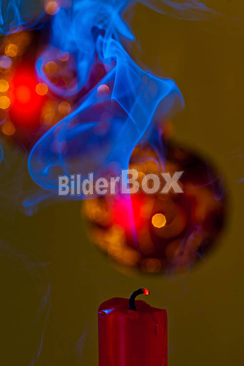 Beschreibung Weihnachten ist vorüber. Eine Kerza am Weihnachtsbaum wird ausgeblasen.