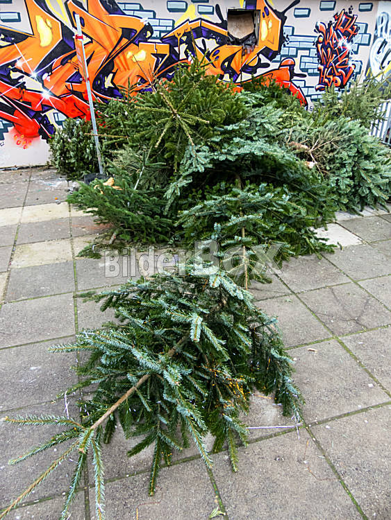 Beschreibung Nach dem Weihnachtsfest werden die Tannenbäume für die Entsorgung gesammelt.