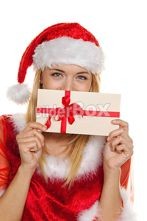 Beschreibung Weihnachtsmann zu Weihnachten mit Gutschein zum Einkaufen