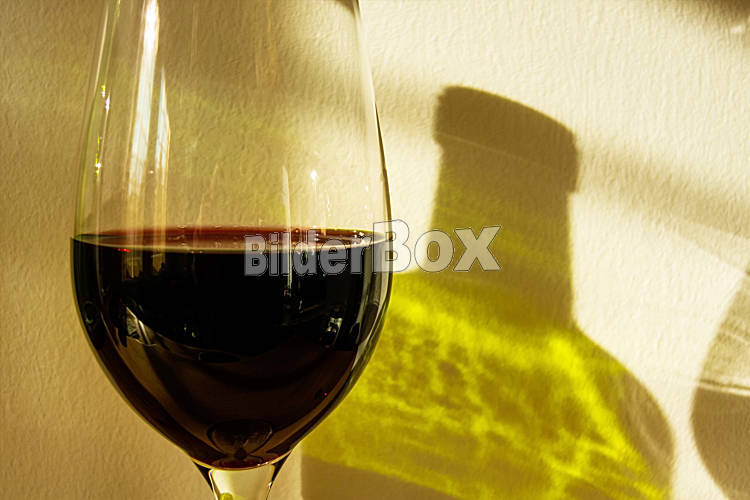 Beschreibung Der Schatten eines Glases und einer Flasche Wein