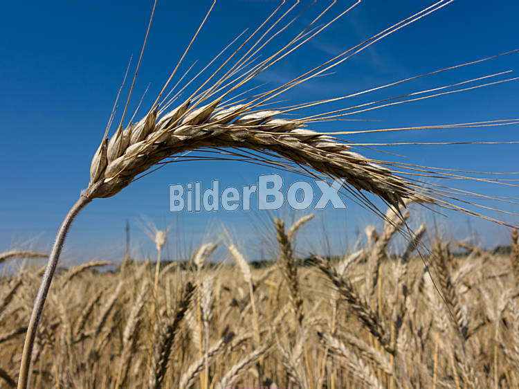 Beschreibung Ein Feld mit Getreide ( Weizen) kurz vor der Ernte. Getreidefelder im Sommer.