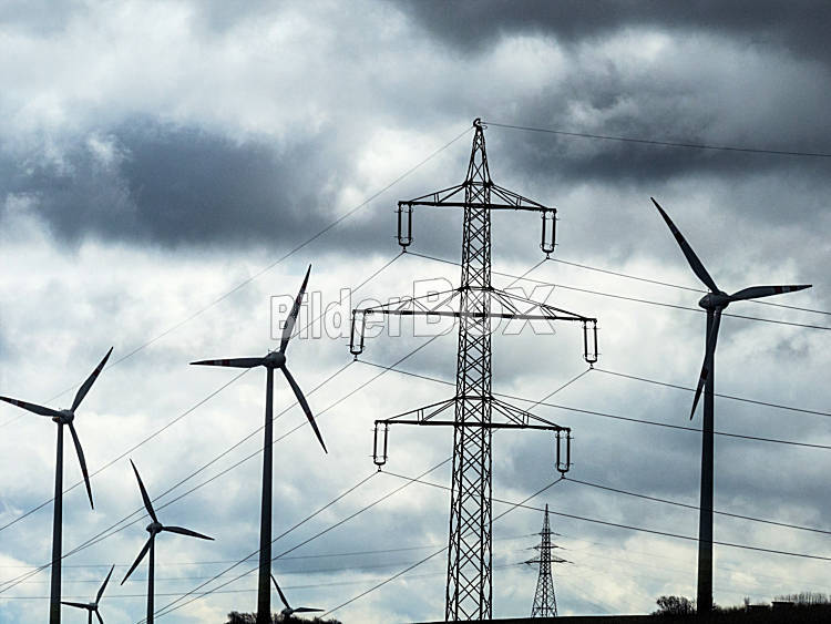 Windrad und Strommasten
