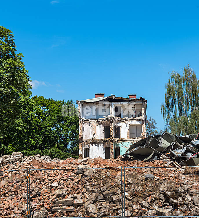 Beschreibung Ein Wohnhaus wird abgerissen um Platz für Neubau zu schaffen