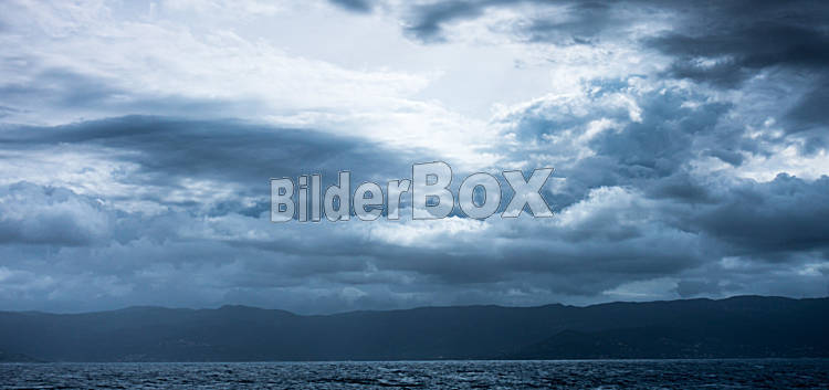 Beschreibung Düstere Wolkenstimmung mit Meer. Symbolbild für Düster, unheimlich und bedrohlich.