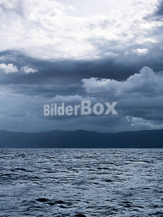 Beschreibung Düstere Wolkenstimmung mit Meer. Symbolbild für Düster, unheimlich und bedrohlich.