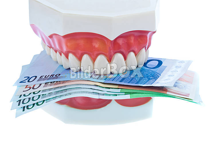 Zahnmodell mit Euroscheinen