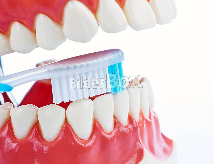 Zahnmodell mit Zahnbürste beim Zähne putzen