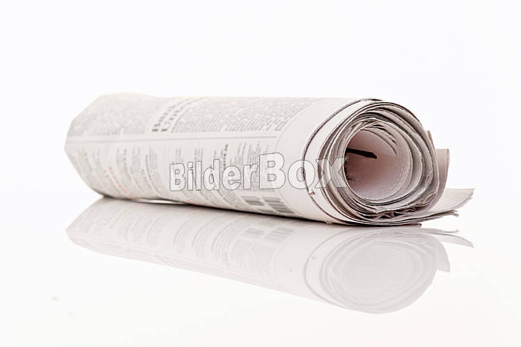 Beschreibung Eine Zeitung liegt auf einem weißen Hintergrund