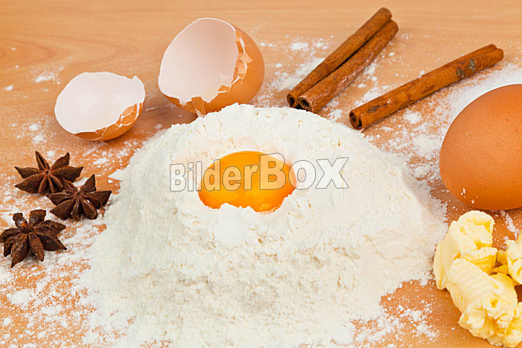 Beschreibung Zutaten zum backen von Weihnachtsbäckerei. Backen von Plätzchen im Advent.