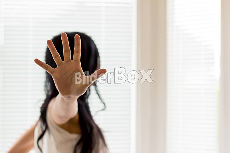 abwehrende Haltung einer Frau