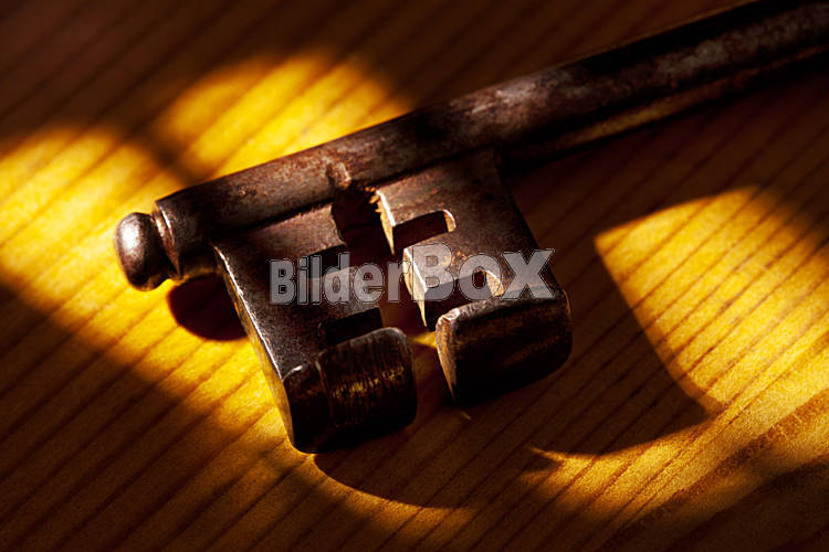 Beschreibung Ein alter Schlüssel liegt auf einem weißen Hintergrund