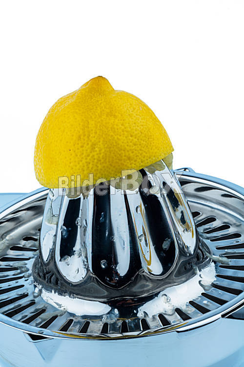 Beschreibung Eine aus gepresste Zitrone auf weißem Hintergrund. Symbolfoto für Steuern, Abgaben,